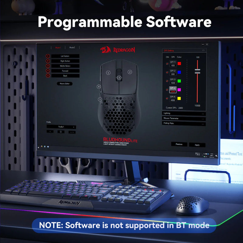 Redragon’s professional driver allows complete control over button mapping, DPI settings, RGB effects, and macros—helping you fine-tune performance and aesthetics to your playstyle.