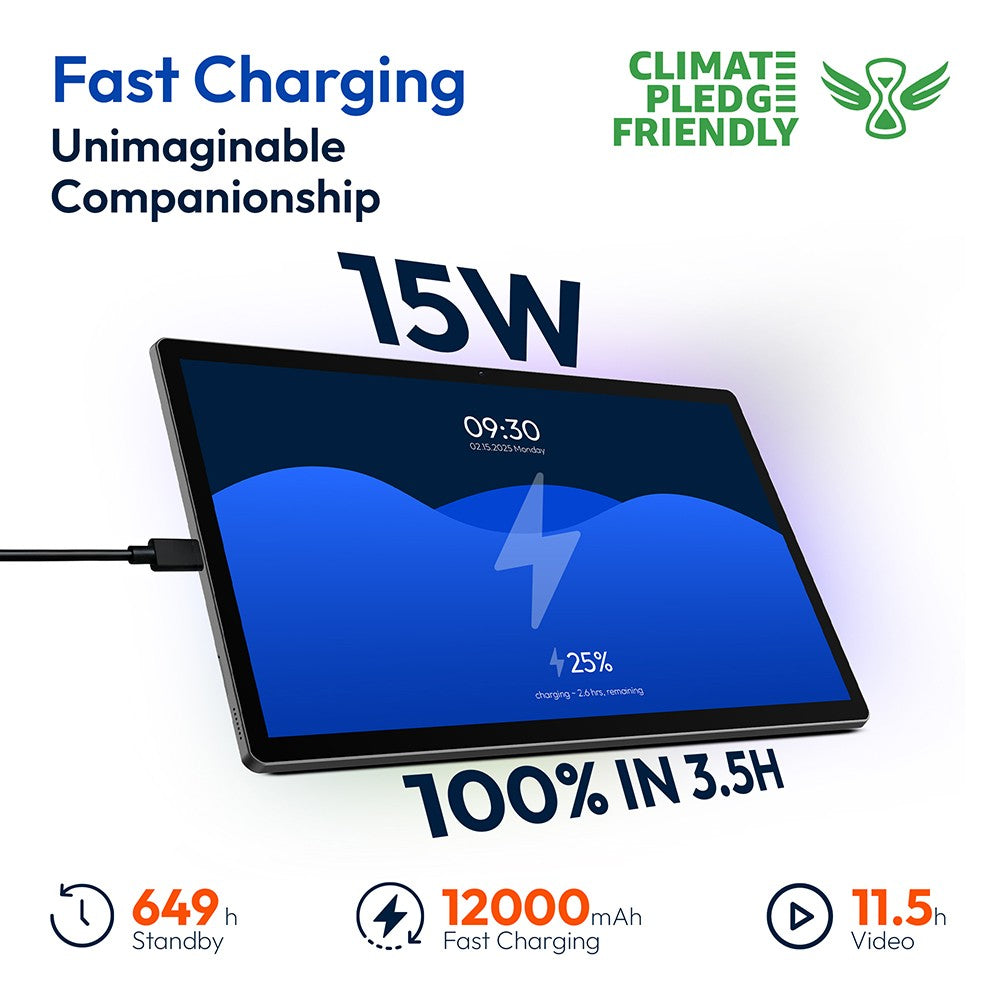 The large 12000mAh battery provides 10.5 hours of video playback, 24 hours of browsing, 18 hours of music playback, and up to 720 hours of standby time—ideal for long days of work or entertainment.