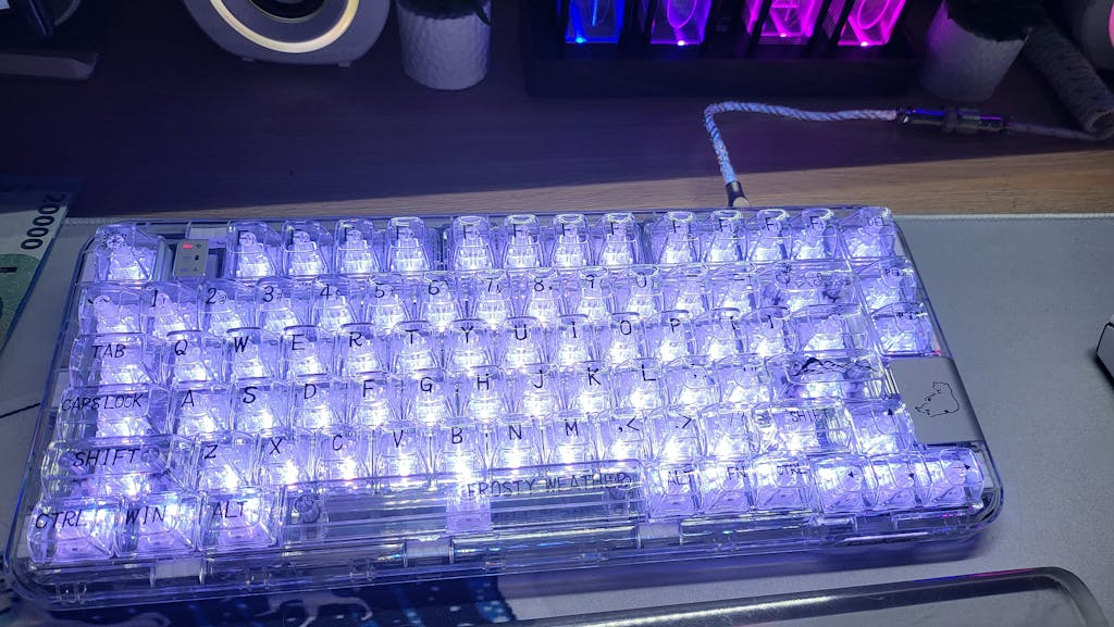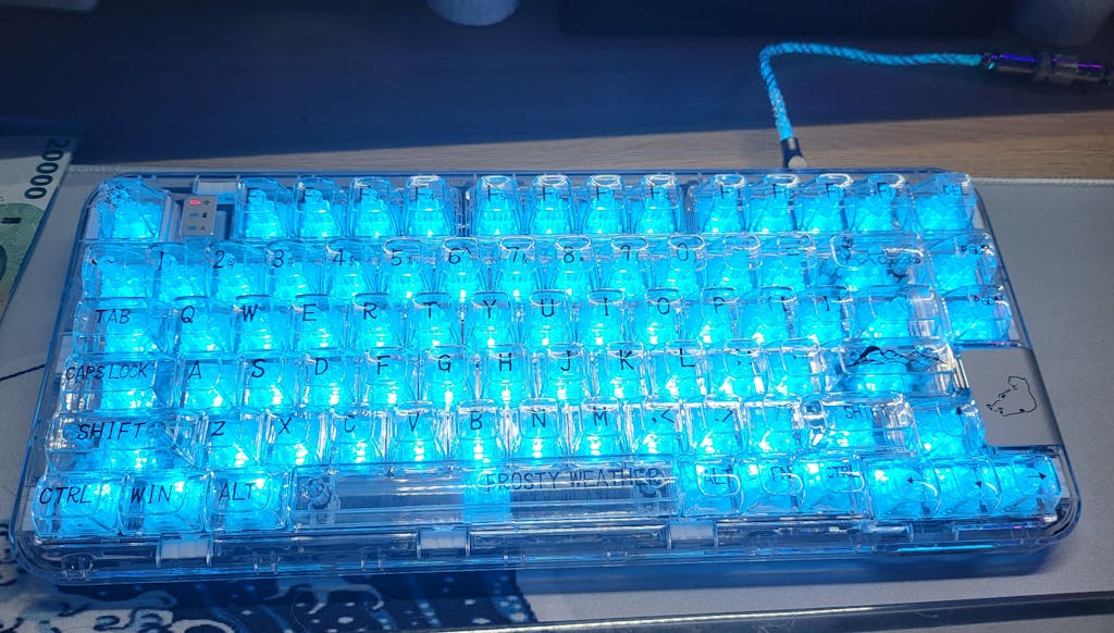 I've been choosing which transparent keyboard I want to buy since quite a long time, and after many considerations, I chose this one over many other transparent keyboards out there. And when I finally received my order, I am 10000% satisfied! It's like a crystal keyboard, everything is transparent and very clear. Oh and the cable is also RGB! that was quite a surprise for me, I love it! .And the typing sound is quite addicting. The service and delivery from whatgeek was also quite fast, considering that this was sent from China to my country Indonesia. Thank you!