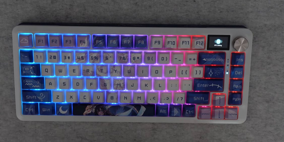 Number of Keys: 81 keys+Knobs Connection: USB Wired /2.4G Wireless/Bluetooth Compatible with: Windows XP/Vista/7/8/10/11/macOS Backlight: RGB Thick Pre-Lubed Linear Switch (Sunuo Switch) Keycaps: Double-Shot Keycaps Anti-ghosting Keys: All Keys |