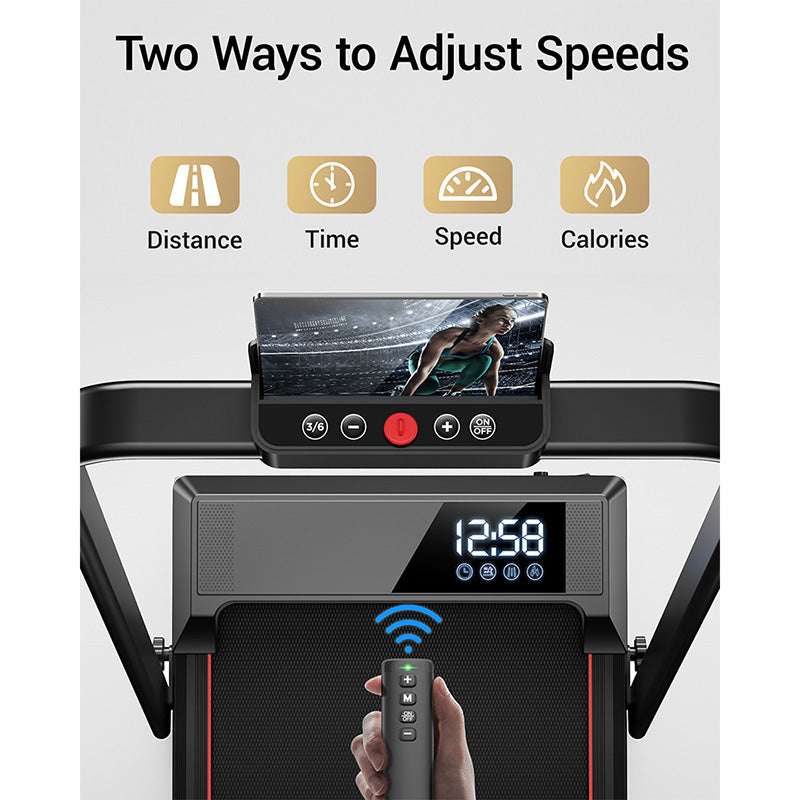 Stay on top of your progress with the intuitive LED display showing time, speed, distance, and calories in real time. When your workout is done, simply fold and slide the treadmill under your sofa or bed — perfect for compact living spaces and minimalist setups.