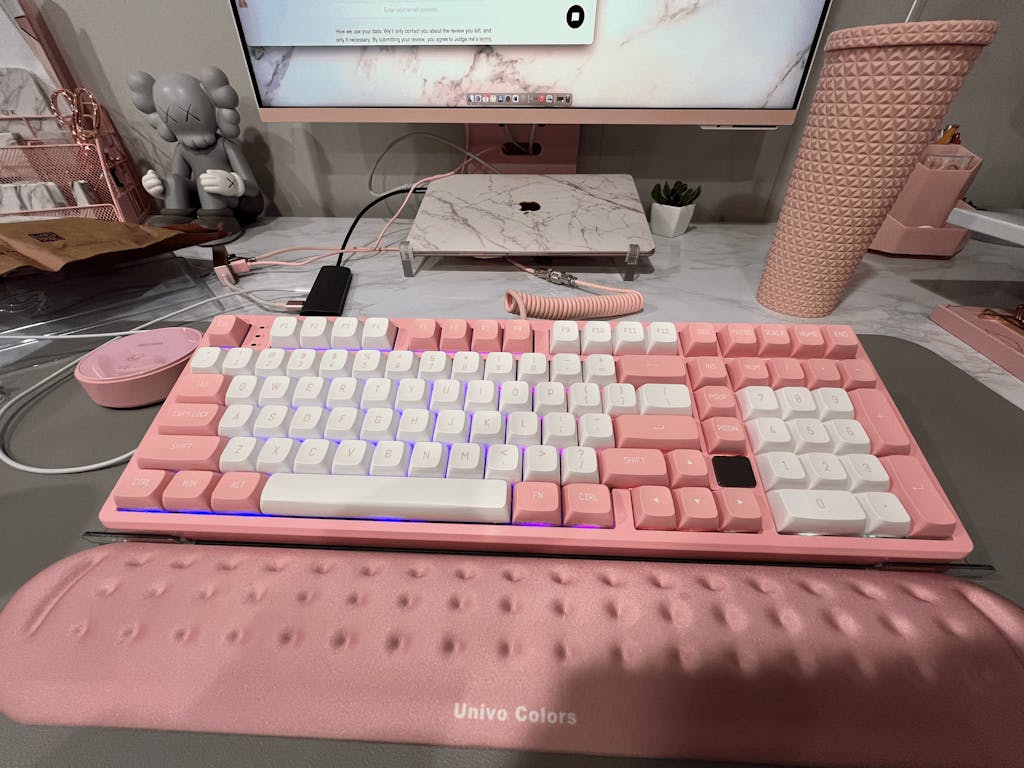 I had bought a Leobog hi98 but it was the wired version. Because it was the closest thing I could get to a Feker Galaxy 80, but I needed the numpad. I settled for the wired version and in white, both not preferable. This was a few months ago, probably in like July 2024. But then the tri-mode connectivity hi98PRO version dropped in PINK and I just HAD to get it. It is nothing short of AMAZING! I got the Barbie linear switches and I went ahead and switched the keycaps to pink and white CSA profile PBT keycaps I got from Amazon and I've nearly recereated a full-size version of a Feker Galaxy 80 but with the very essential numpad! I am in love with the look, sound, and feel of this keyboard!