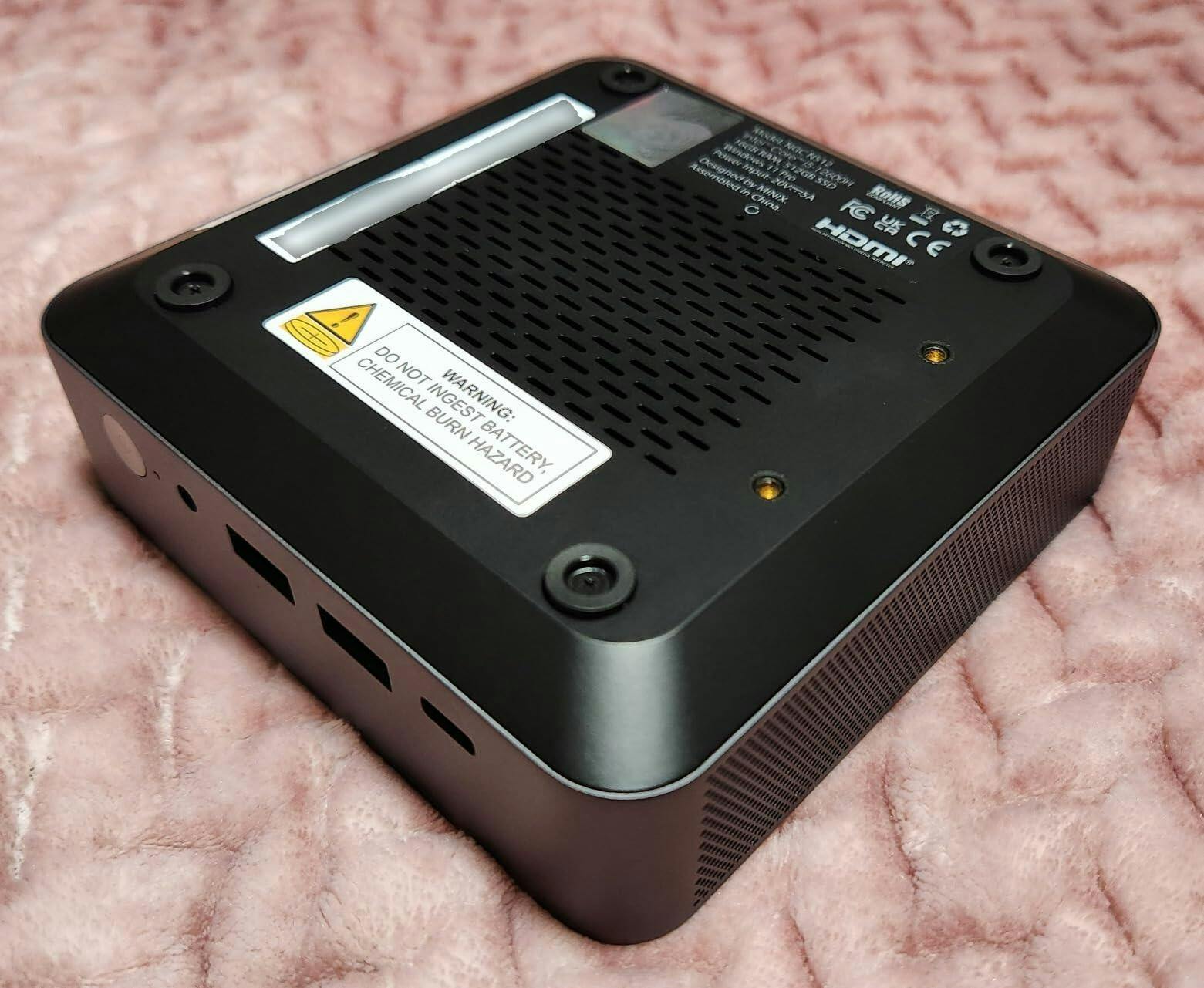 This tiny, mid-range, i5 workhorse has good speed and graphics, but is a little light on memory and storage. -- TL/DR begin -- Well packaged with competent, though brief, English documentation. Comes with PC, ~5ft GaN USB-C 100W PD power adapter with Type A/C/G plugs, short HDMI cable, and VESA mounting bracket. Windows 11 Pro is pre-installed but I always wipe it out and set up dual boot Win11/Linux. Lots of unknowns in the device manager, on a fresh install of Windows, which requires the vendor/product (vid/pid) and catalog dot update dot microsoft dot com. This is a primarily Alder Lake-H/P platform with AX210 Wifi/BT, Realtek ethernet, Intel/Realtek audio, and Micron/Kingston memory/storage. Thunderbolt 4 is used, rather than USB-4, and, along with USB-C 3.2 Gen2, provides high-end video output. Different HDMI specs, per port, is peculiar. 16Gb system memory is shared with Intel Iris Xe GPU which may be a limiting factor. 12th Gen i5 CPU is already two generations behind. Information and product support, on the manufacturer's website (minix dot us), is trivial and currently unavailable. ESC/DEL keys enter BIOS, while F11 brings up the one-time (BBS) boot menu. Heat dissipation seems good, with well ventilated outer aluminum shell, and powerful, somewhat noisy, fan. Assessment logo on packaging (UKCA, CE, FCC). Power supply displays FCC, CB, CE, assessment, double insulated, VI energy efficiency, indoor use, etc. -- TL/DR end -- Great, slightly dated, mini desktop PC that's fast, and powerful, enough to satisfy all but the most intense needs.